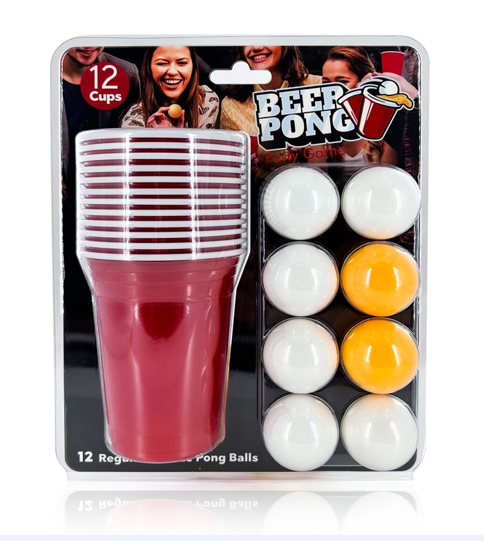 Each party pong set contains twenty mini cups and two ping pong balls.